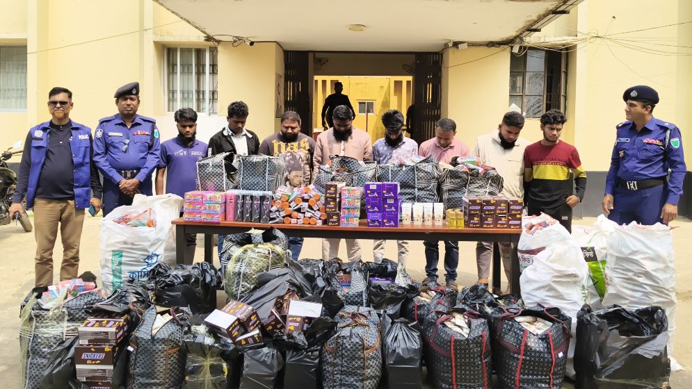 সিলেটে ভারতীয় পণ্যসহ নরসিংদী ও নারায়ণগঞ্জের ৯ চোরাকারবারি আটক